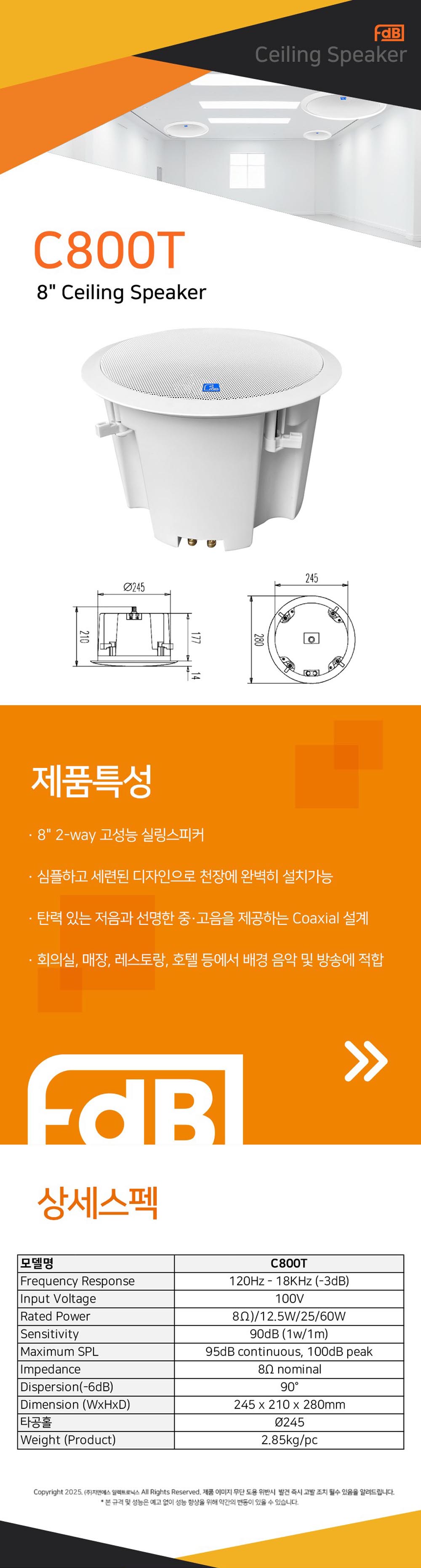 * 제품의 특징 및 사양 ( 지앤에스 FDB 실링 스피커 C800T )