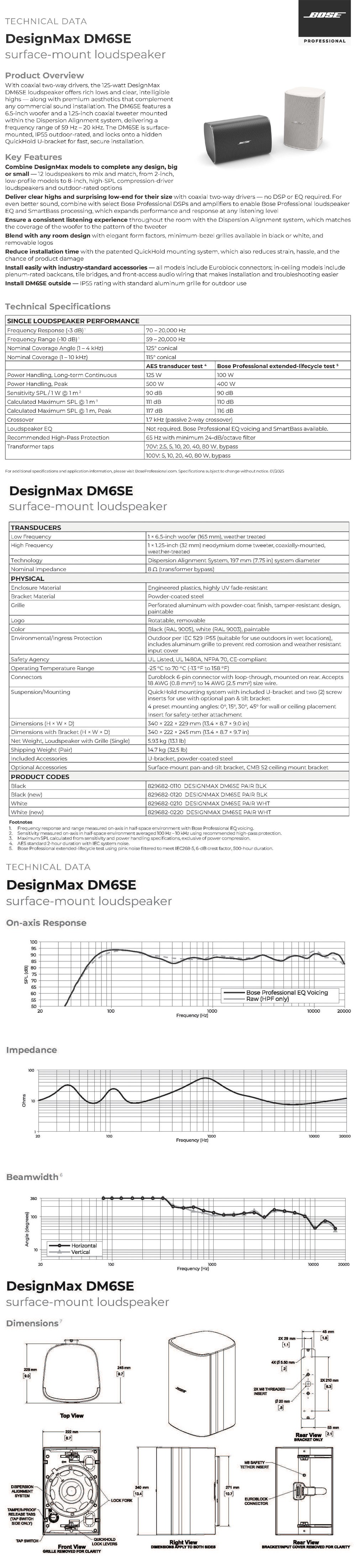 - 6.5" 동축 2-웨이 드라이버를 사용하는 125와트 Bose Professional DesignMax DM6SE 스피커는