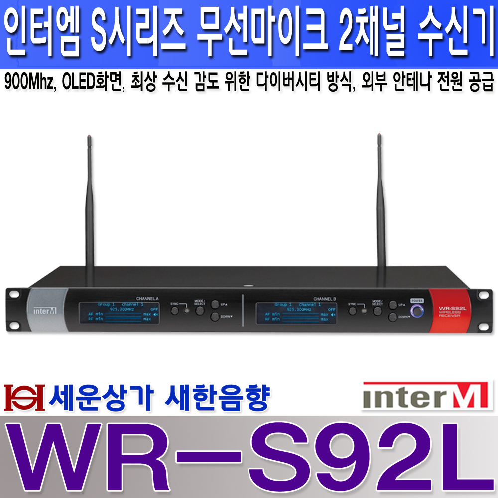 WR-S92L-HH 인터엠 2채널 900MHz 무선마이크 세트, 다이버시티, OLED화면 : 새한음향 세운상가
