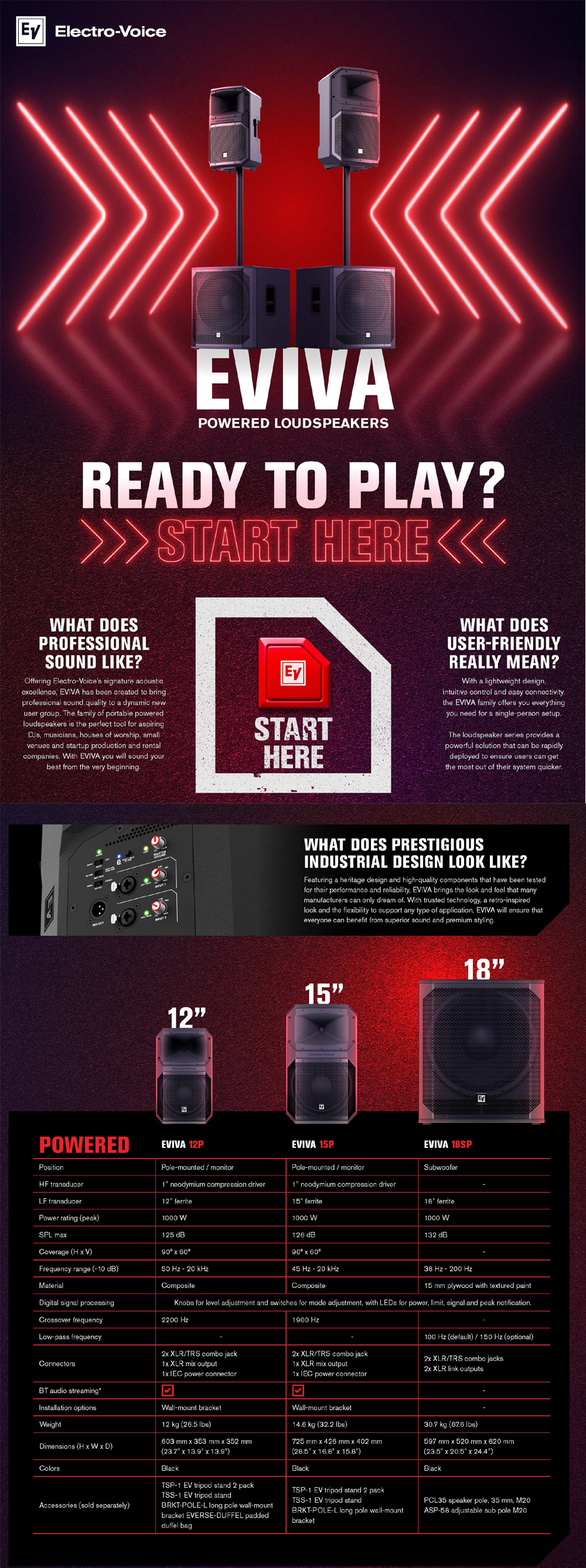 - EVIVA 시리즈는 Electro-Voice의 시그니처 음향 기술이 집약된 휴대용 파워드 스피커 시리즈로,