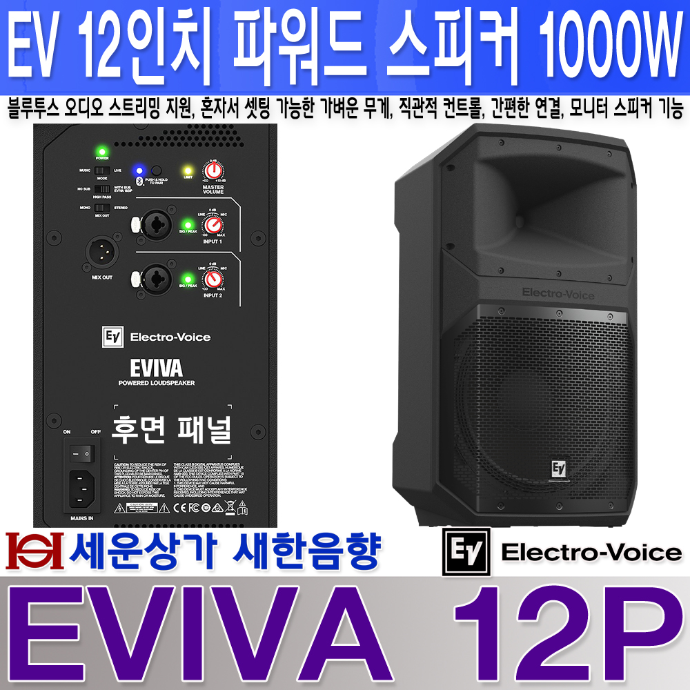 EVIVA 12P이브이 EV 12인치 파워드 스피커 1000W,블루투스 스트리밍, 저중량, 일렉트로보이스 EVIVA12P, 에비바12P 본문