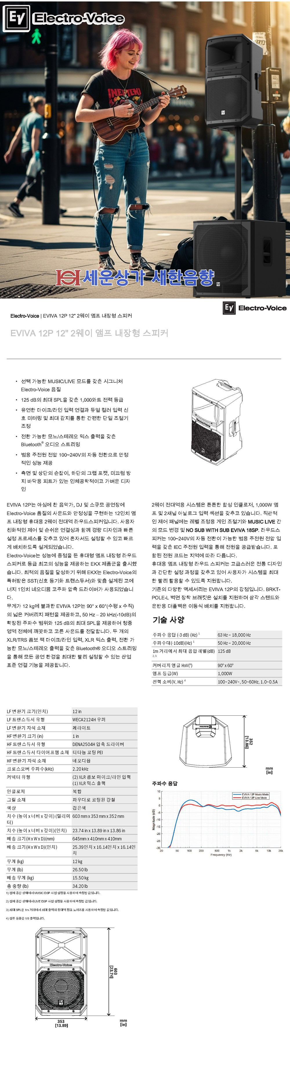 * 제품의 특징 및 사양 ( EV 일렉트로보이스 12" 앰프 내장 파워드 스피커 EVIVA12P / 에비바12P )