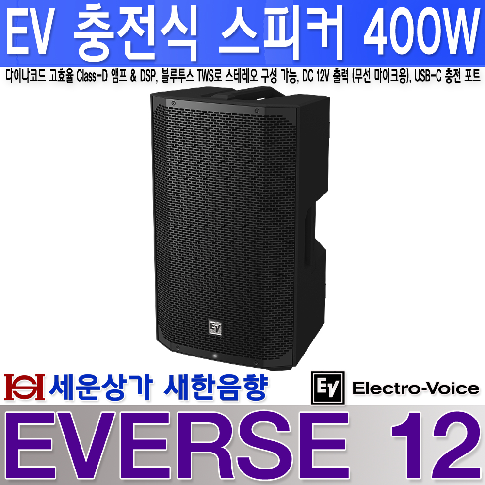 EVERSE12 이브이 EV 충전식 파워드 스피커 400W,공연 연주 버스킹 등 : 새한음향 세운상가