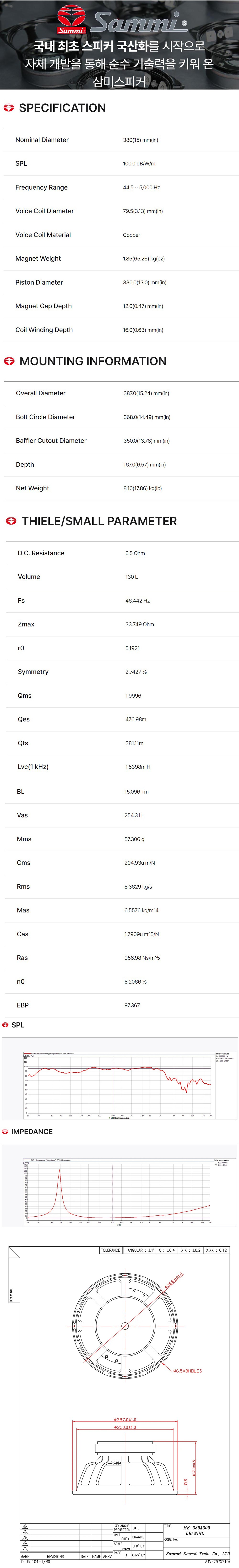 * 제품의 특징 및 사양 ( 삼미스피커 15" 대구경 저음용 뮤직 스피커 ME-380A300 )