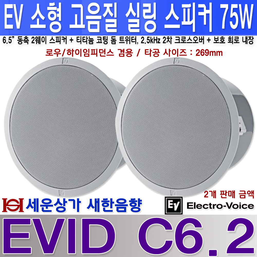 EVID-C6.2 이브이 EV 고음질 실링 스피커 75W, 2웨이 방식,하이/로우임피던스 : 새한음향 세운상가
