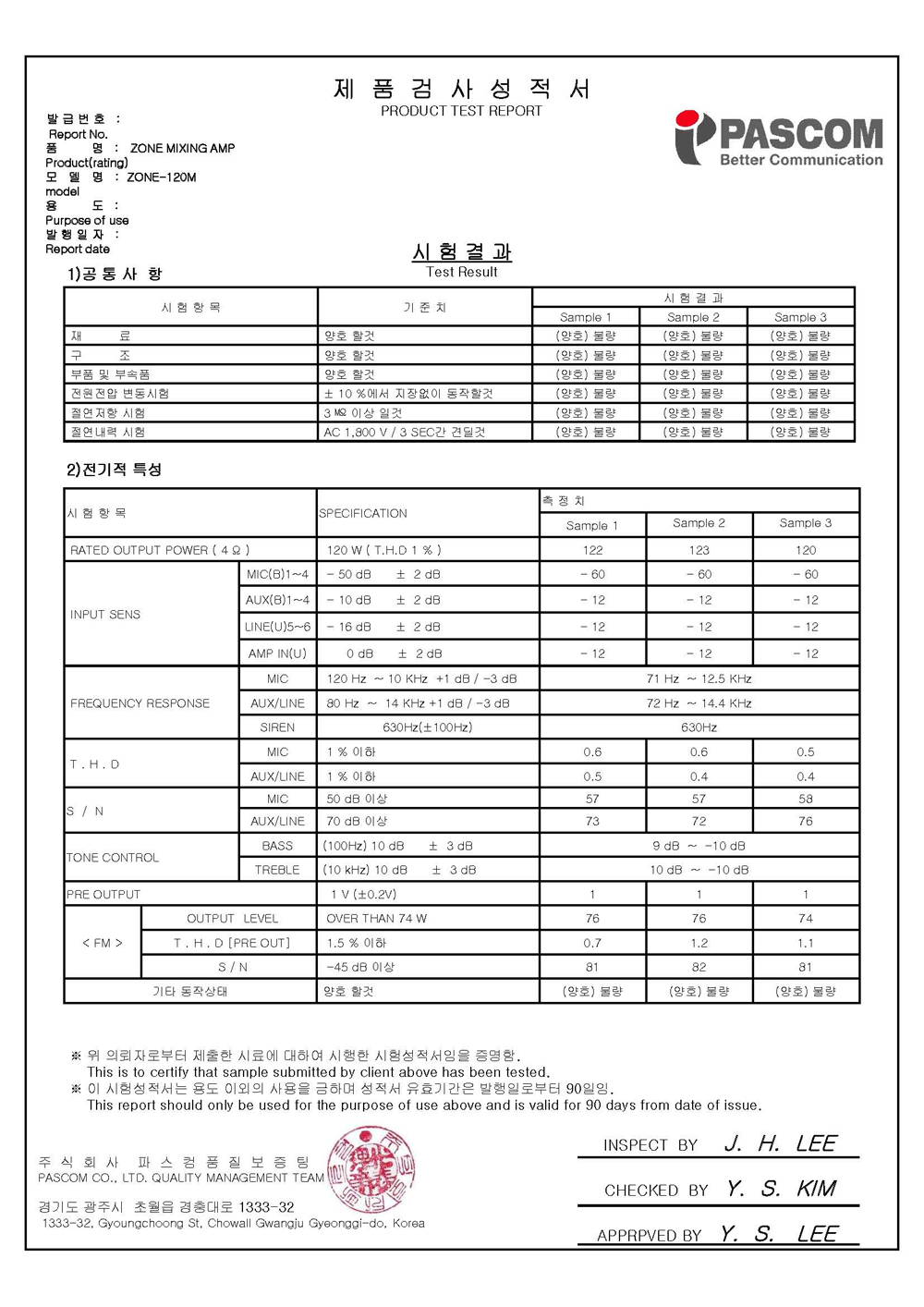 * 제품의 특징 및 기능 ( PASCOM ZONE-120M )