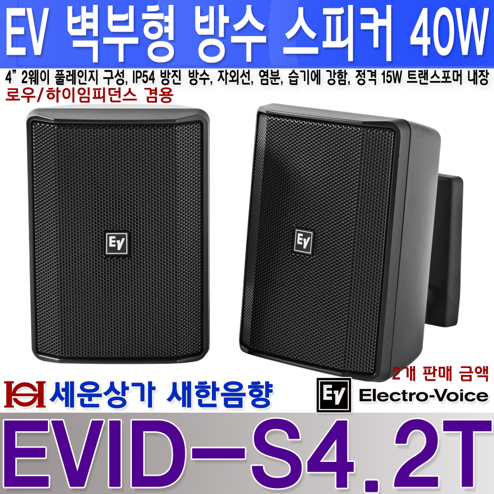 EVID-S4.2 이브이 EV 벽부형 스피커 49W, IP54 방수 방진, 8오옴 : 새한음향 세운상가