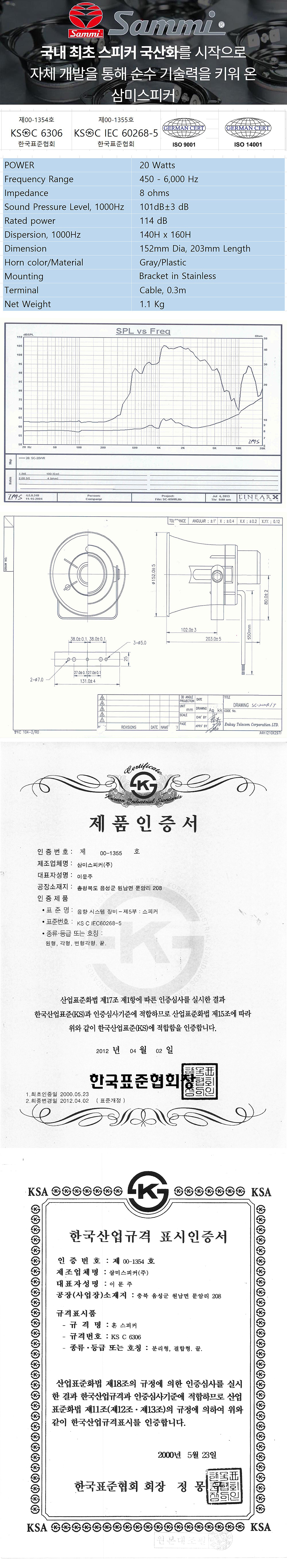 * 제품의 특징 및 사양 ( 삼미 소형 방수 혼 스피커 SC-20WR )