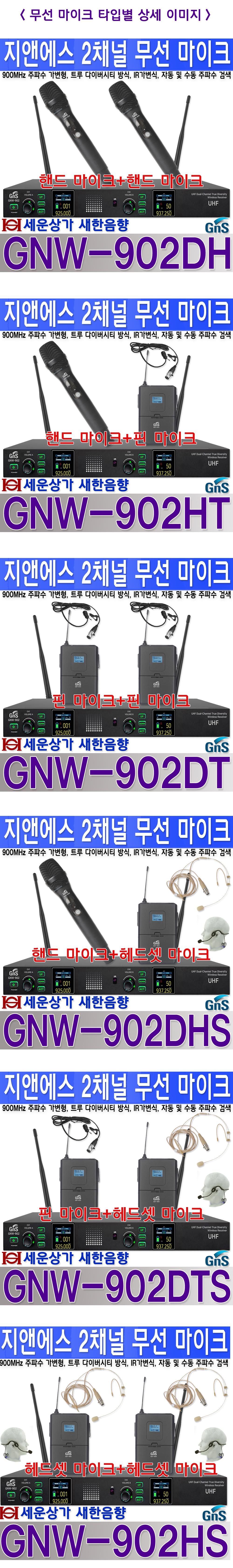 - GNW-902HS : 헤드셋 마이크+헤드셋 마이크 타입