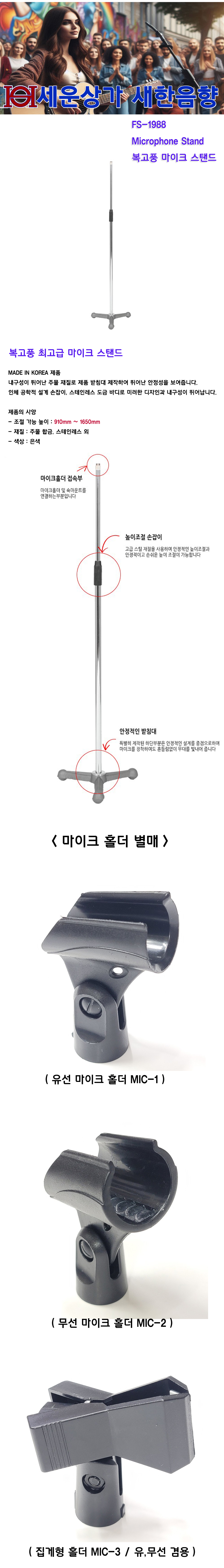 FS-1988 복고풍 마이크 스탠드, 클럽, 공연장, 버스킹, 영화 촬영 소품 등 : 새한음향 세운상가