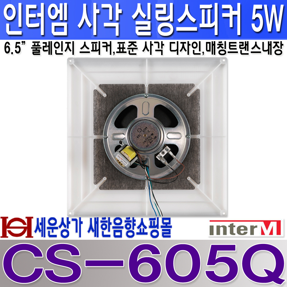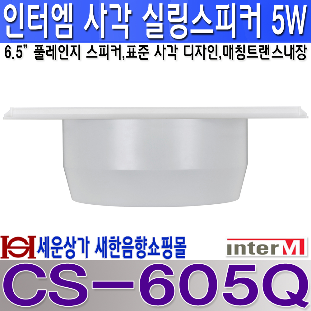 CS-605Q 인터엠 사각 실링 스피커 5W, PVC 재질 그릴 및 커버, CS605Q : 새한음향 세운상가