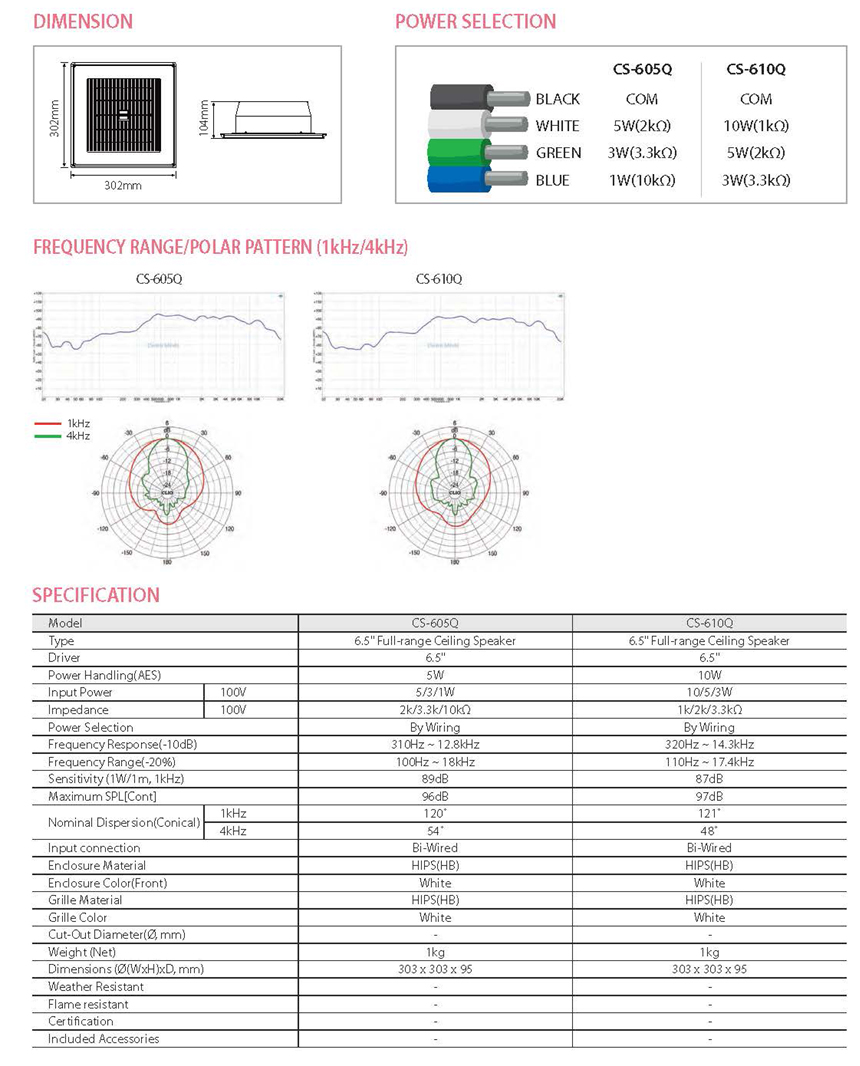 * 제품의 특징 및 사양 ( CS-605Q 인터엠 사각 실링 스피커 )