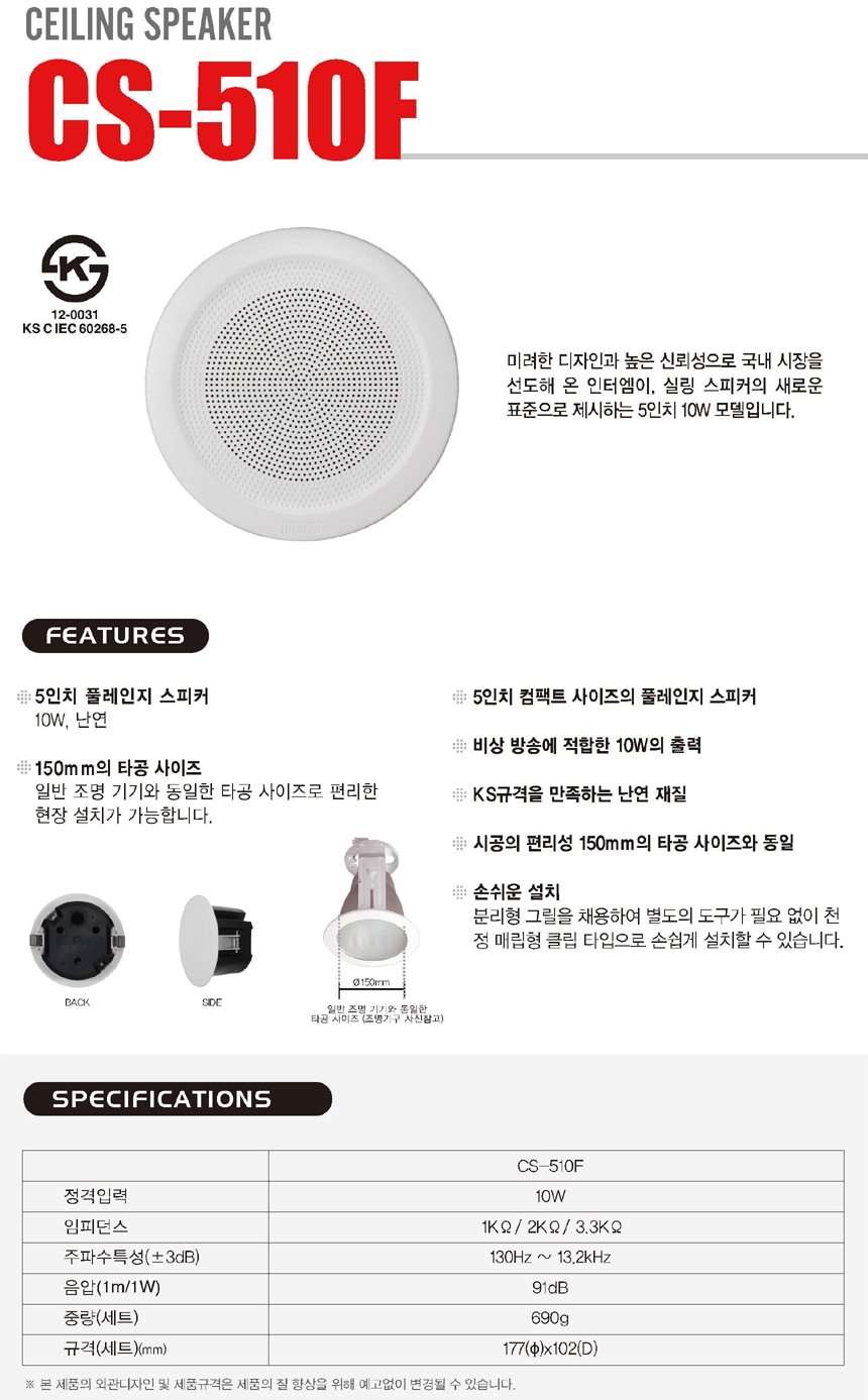 - 모델명 : CS-510F 인터엠 실링 스피커
