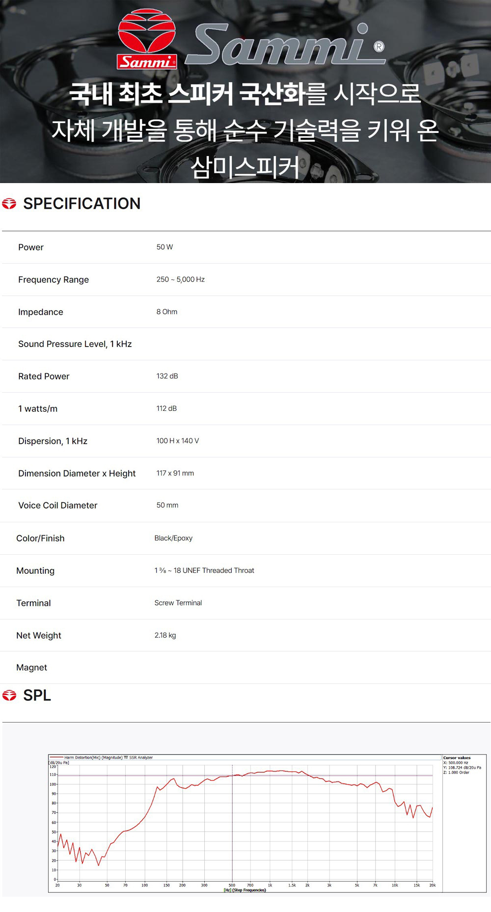 * 제품의 특징 및 사양 ( 삼미스피커 혼 결합용 드라이버 유니트 NSU-50N )