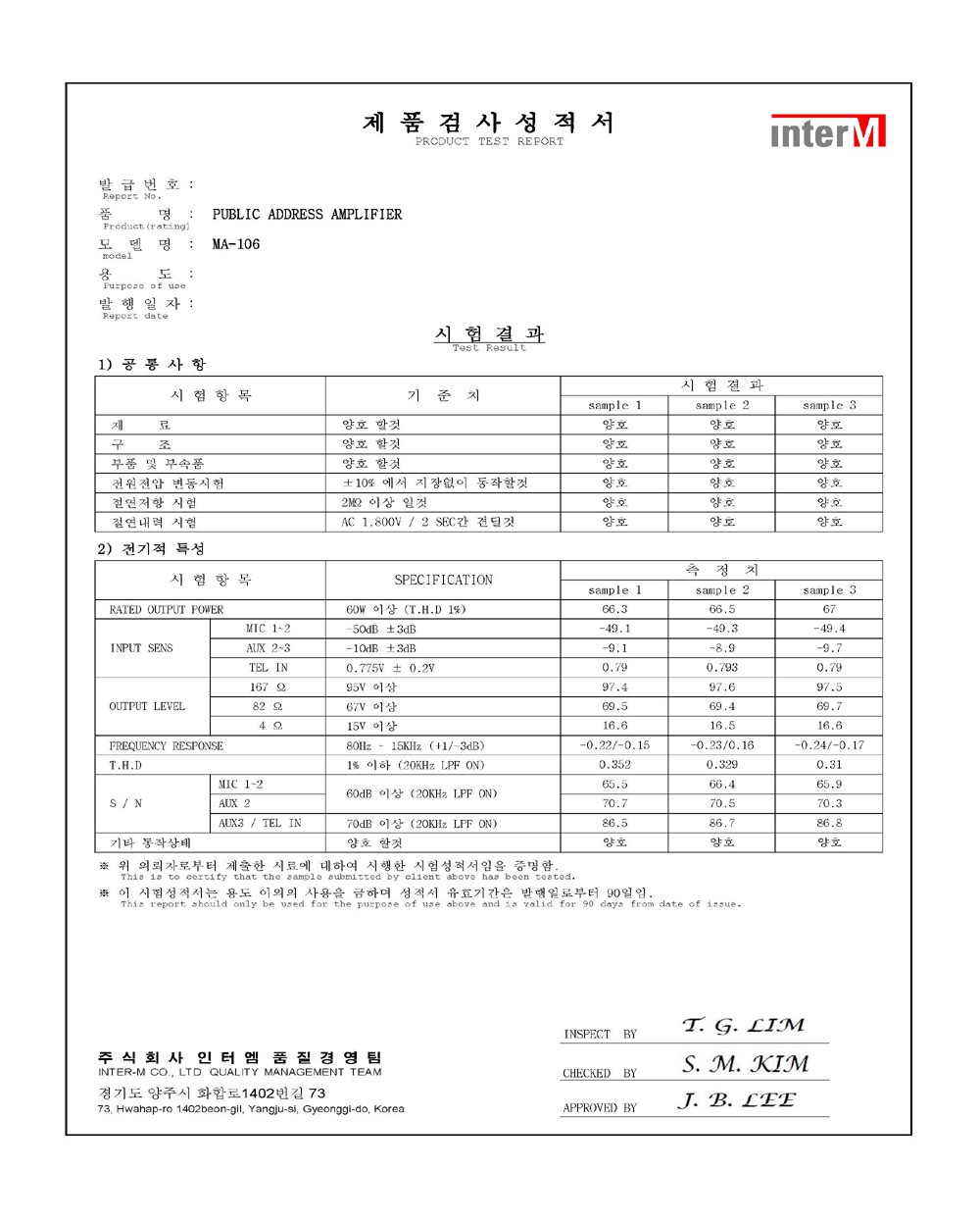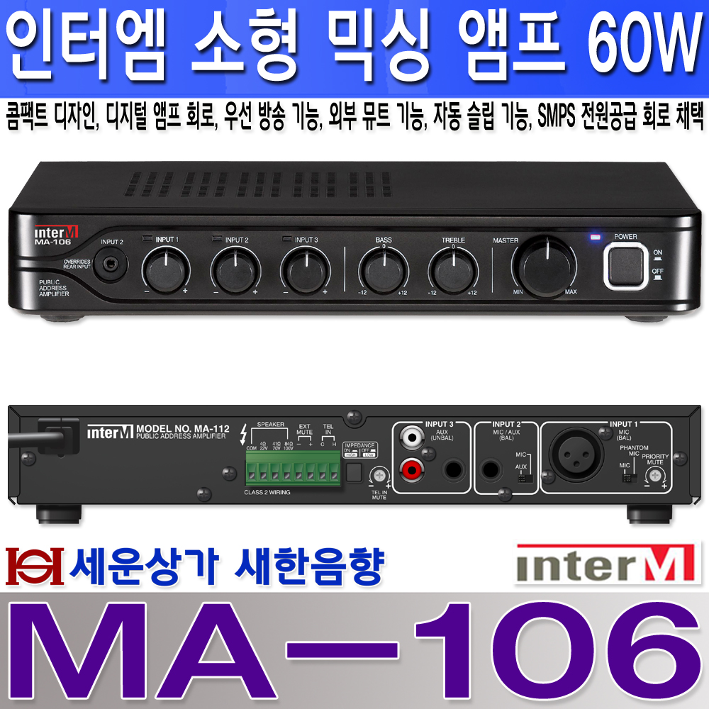 MA-106 인터엠 소형 디지털 앰프 60W, 콤팩트 사이즈, 우선 방송, 뮤트 기능 : 새한음향 세운상가