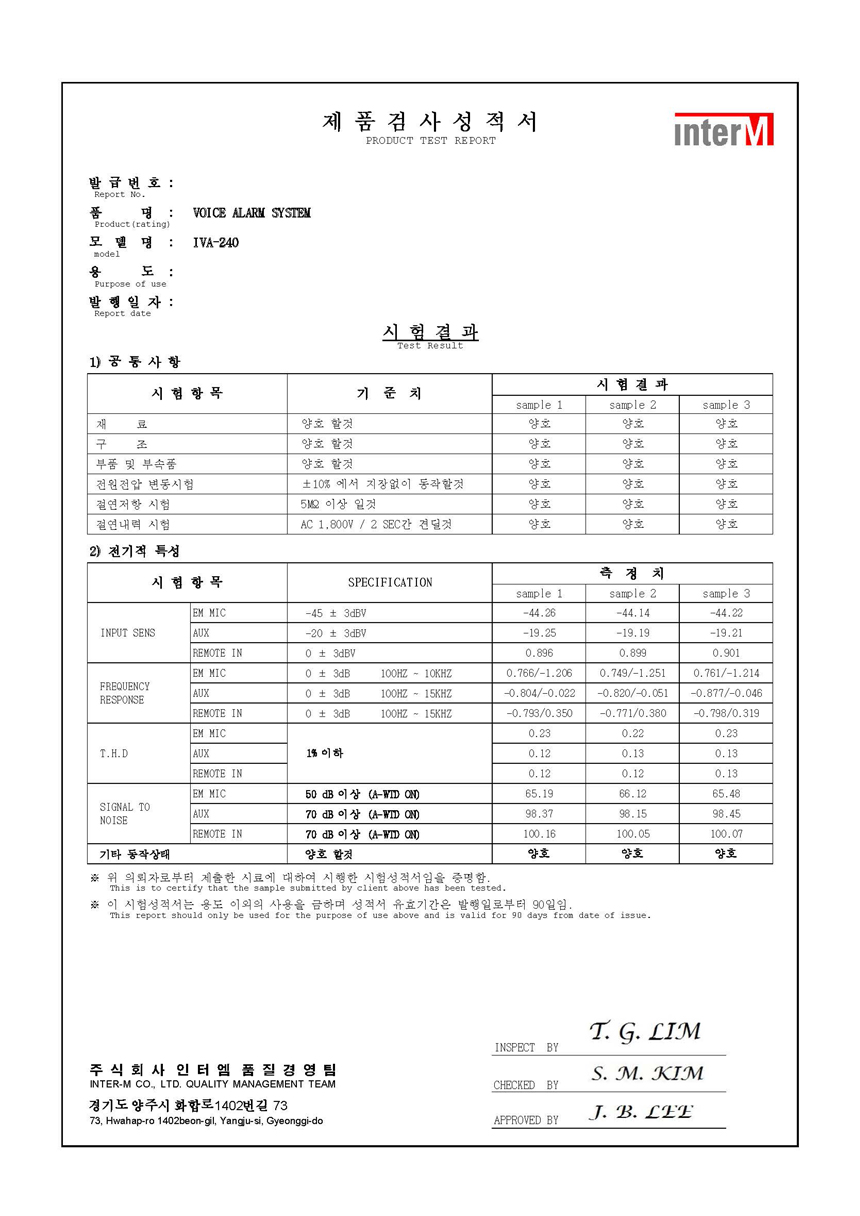* 제품의 특징 및 사양 ( 인터엠 소방 앰프, 벽부형 IVA-240 )