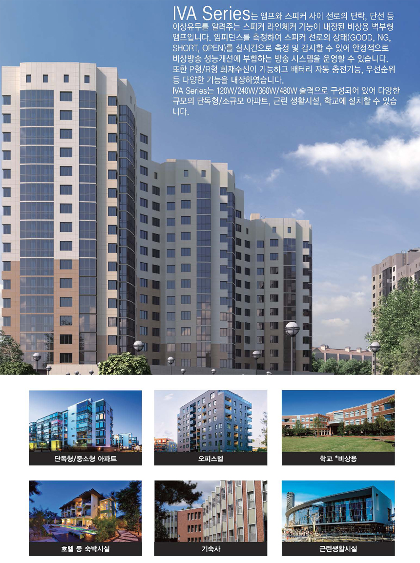 - IVA Series는 120W/240W/360W/480W 출력으로 구성되어 있어 다양한 규모의 단독형/소규모 아파트,