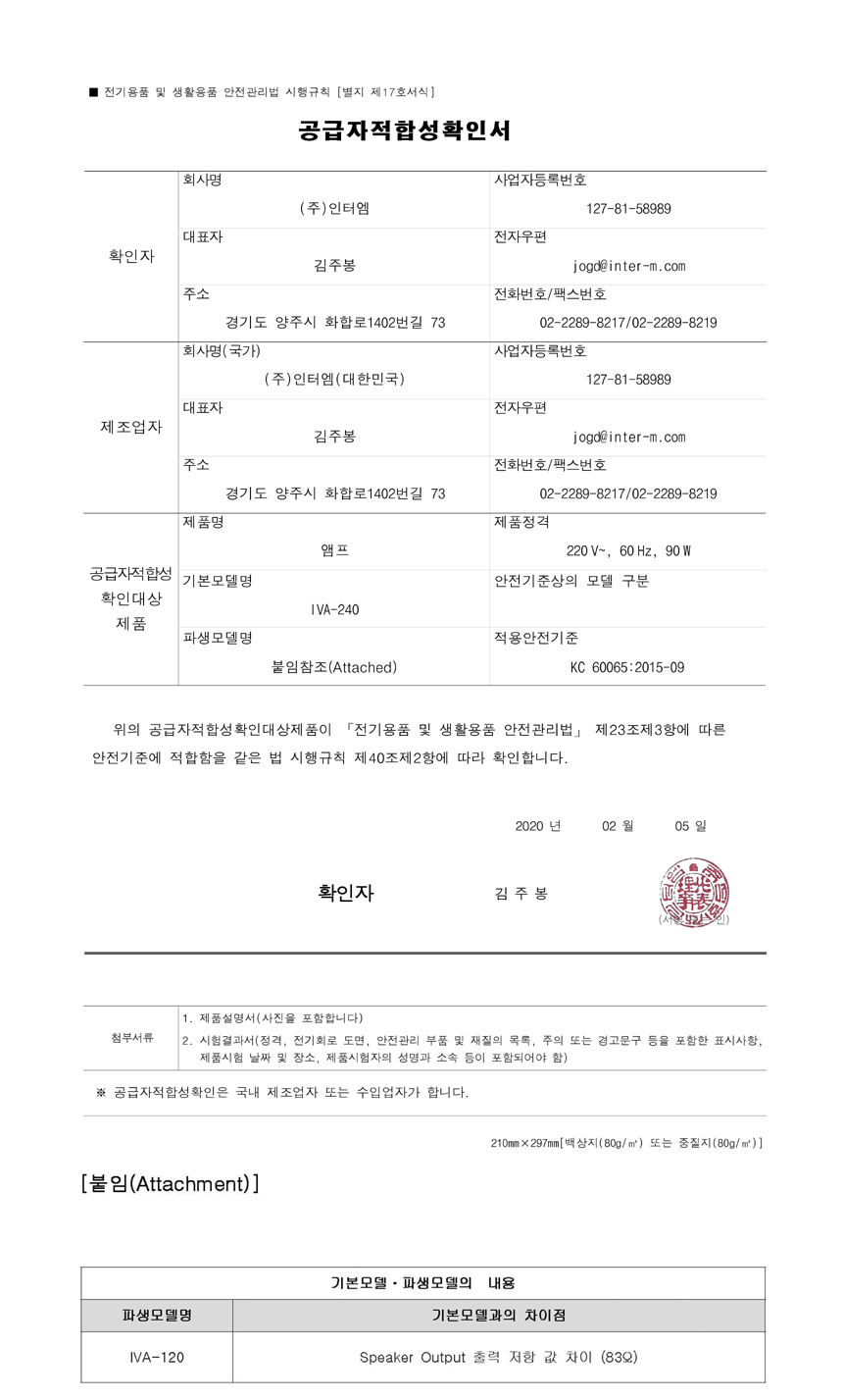 - 모델명 : IVA-240