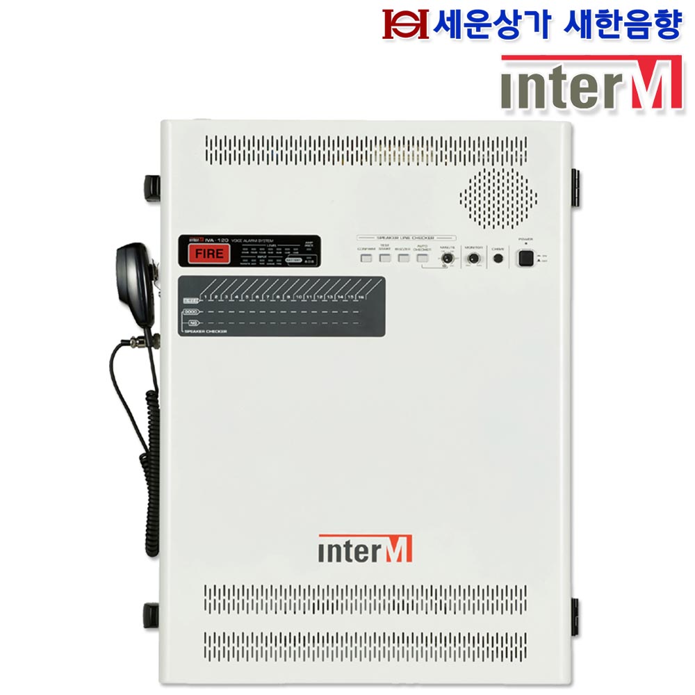 IVA-120 인터엠 벽부형 비상 방송 앰프 120W, 16회로,라인체커기 내장 / IVA120 소방 앰프, 아파트 앰프