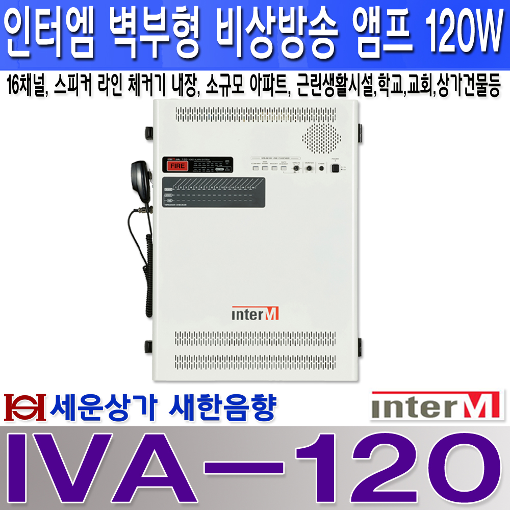IVA-120인터엠 벽부형 비상 방송 앰프 120W, 16회로,라인체커기내장 IVA120 : 새한음향 세운상가