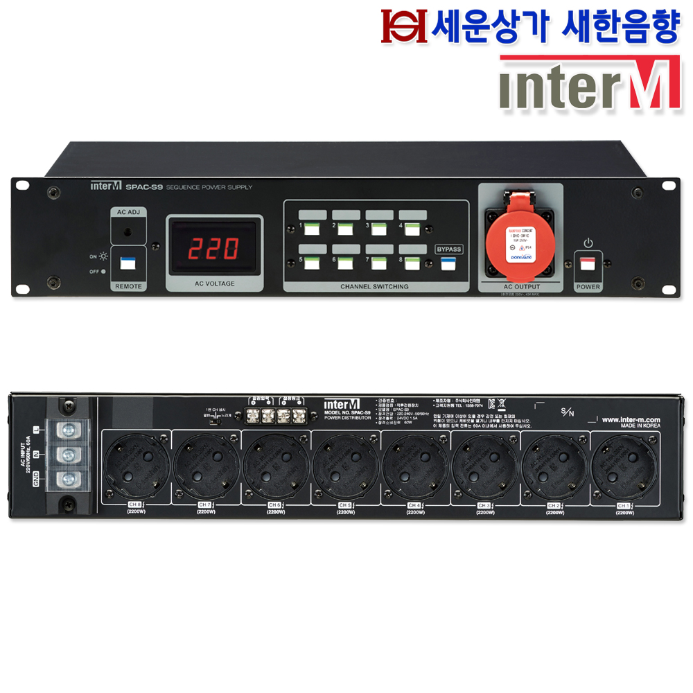 SPAC-S9인터엠 8채널 순차 전원 공급기, 채널당 2200W, 접점, 링크, 바이패스 : 새한음향 세운상가