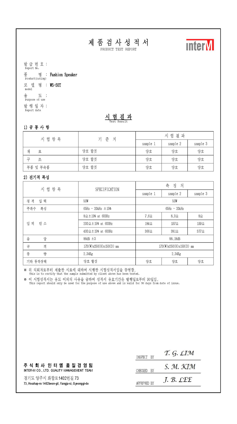 - 모델명 : WS-50T
