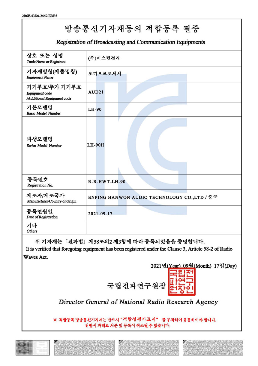 - 인증 번호 : R-R-HWT-LH-90