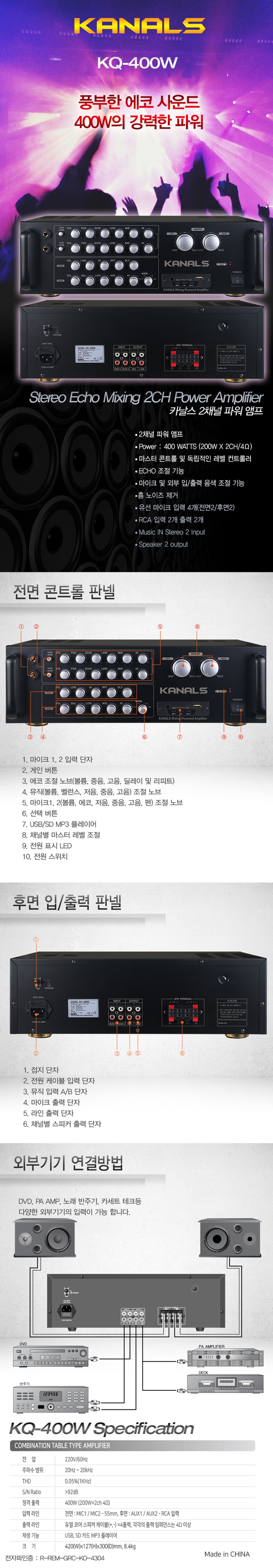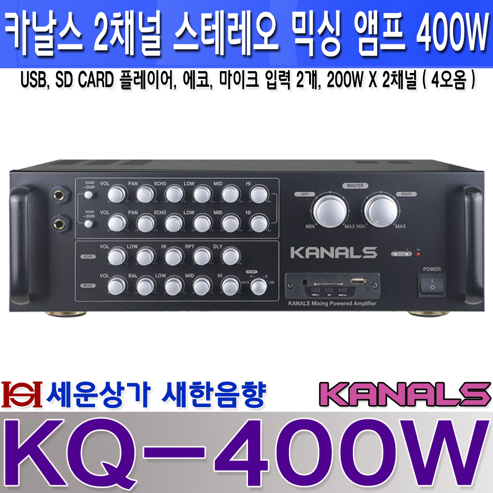 KQ-400W카날스 2채널 엠프 400W, USB, SD, 에코, 채널별 개별 음량 조절 : 새한음향 세운상가