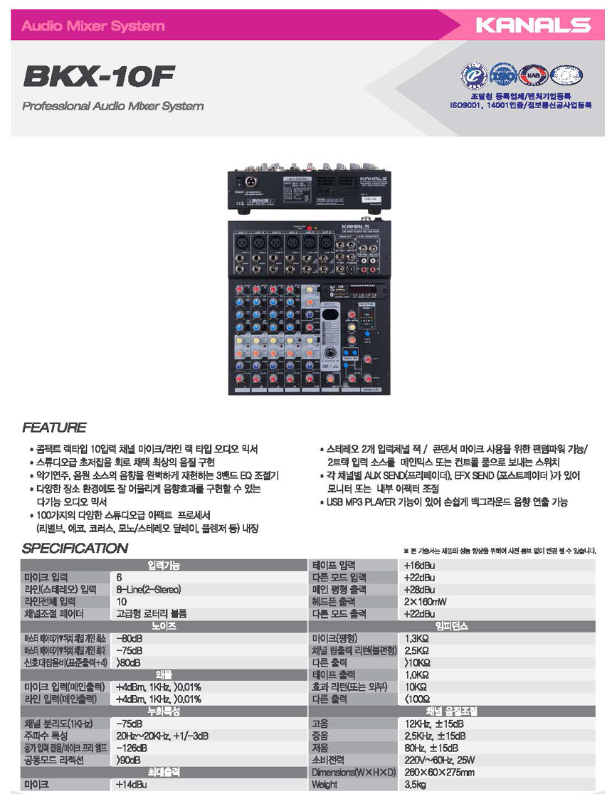 - 품 명 : 카날스 콤팩트 오디오 믹서 / 콘솔 믹서 / BKX-10F