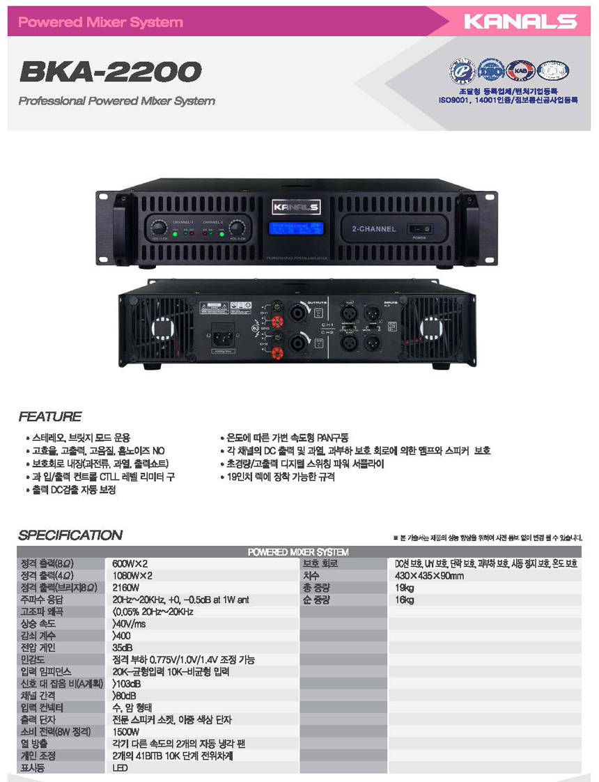 - 모델명 : BKA-2200 파워 앰프
