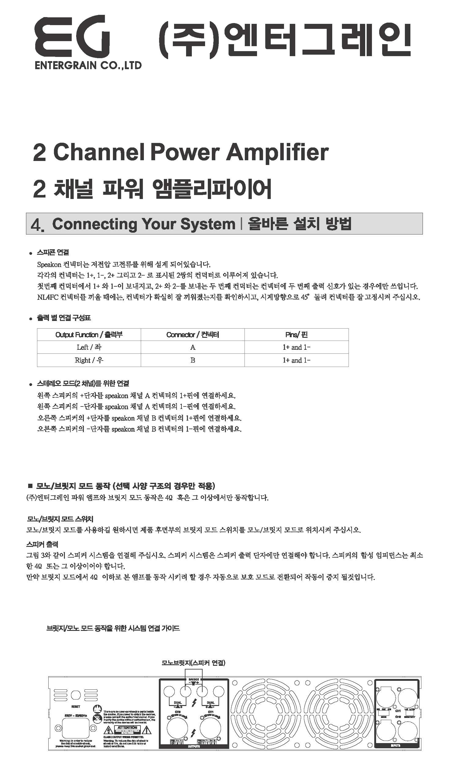 BKA-2200 엔터그레인 카날스 2채널 파워 앰프 2160W, 스테레오 브릿지 모드 선택 / BKA2200 본문