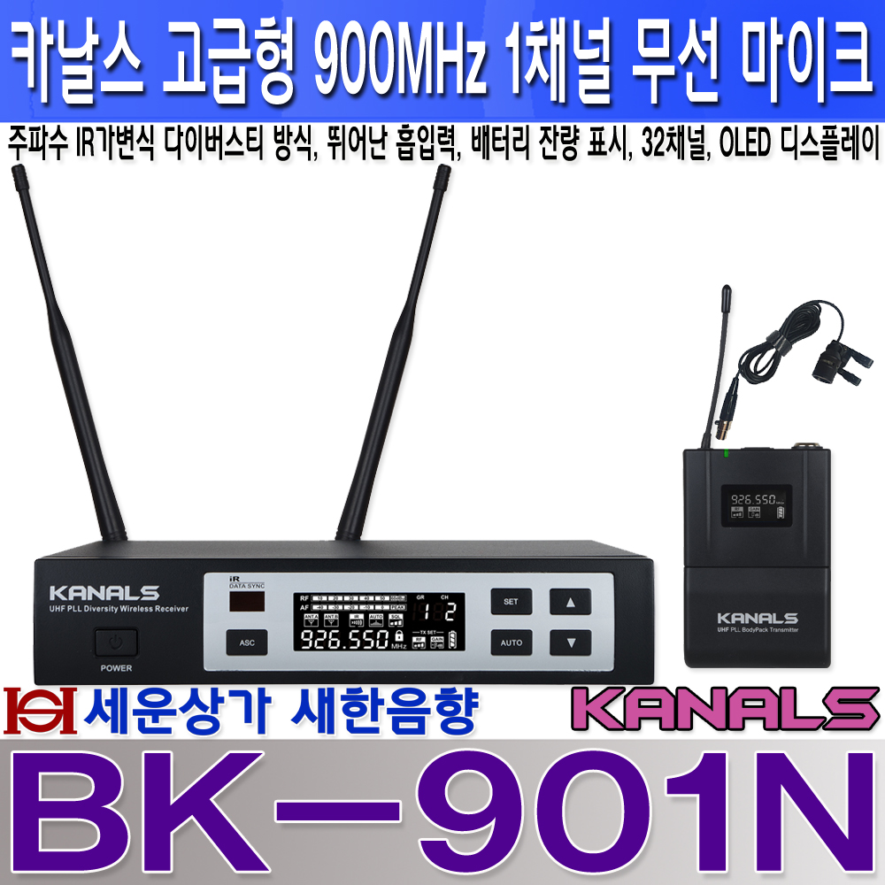 BK-901N 카날스 고급 1채널 무선 마이크, 900MHz 가변식, 배터리 잔량 표시 : 새한음향 세운상가