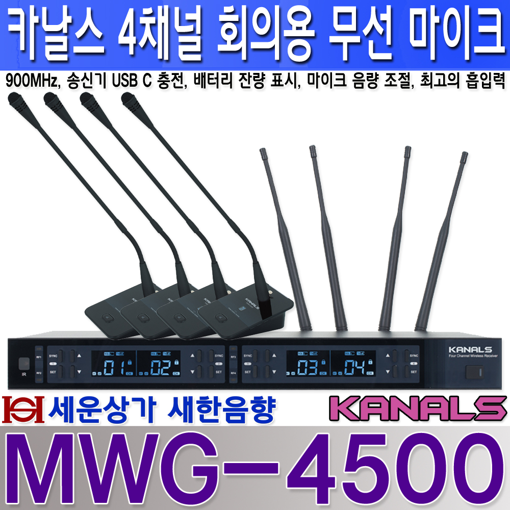 MWG-4500 카날스 4채널 회의용 무선 마이크, USB-C 충전, 뛰어난 흡입력 : 새한음향 세운상가
