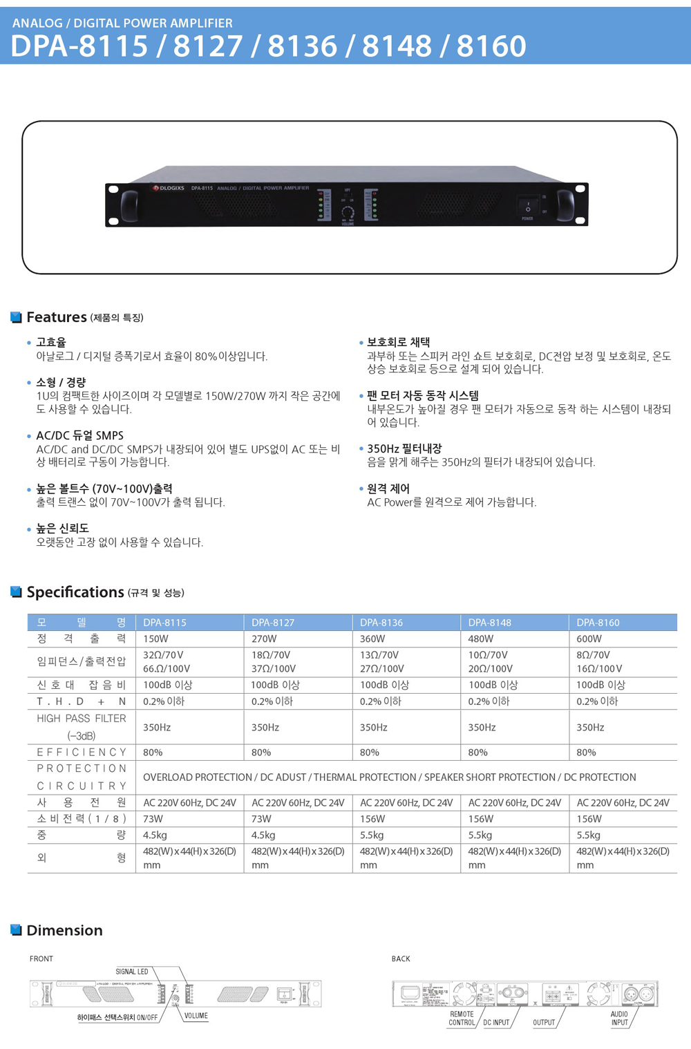 * 제품의 특징 및 사양 ( 디라직 디지털 파워 앰프 DPA-8148 )