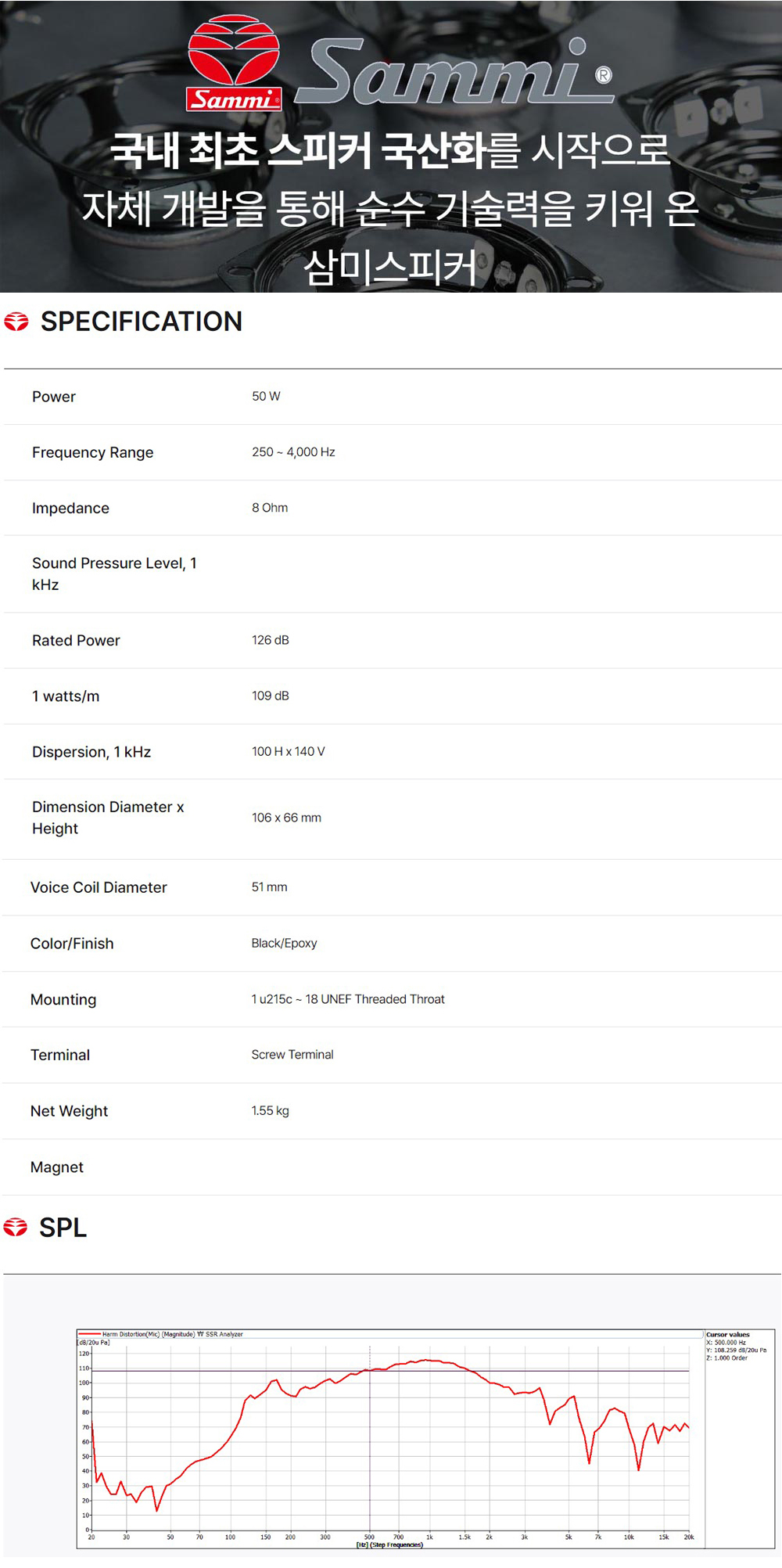 - 품 명 : 삼미스피커 혼 결합용 저중량 고출력 드라이버 유니트