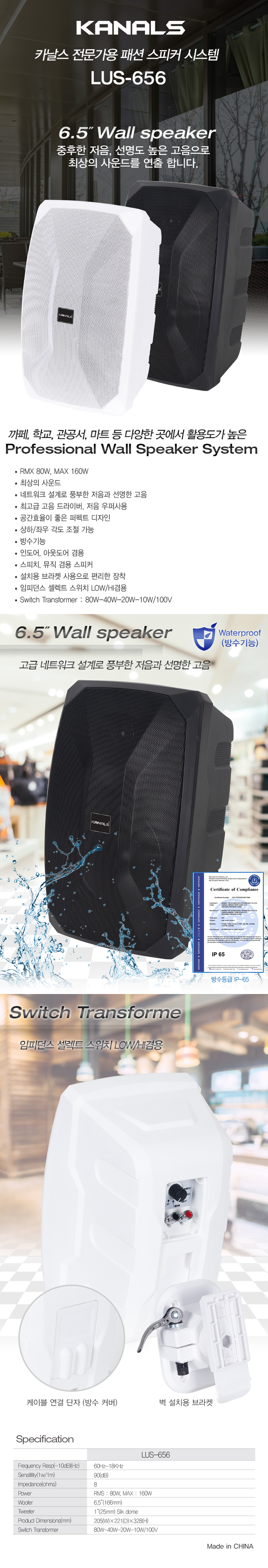LUS-656 카날스 패션 방수 스피커 최대 160W, IP65, 로우/하이임피던스 겸용 : 새한음향 세운상가