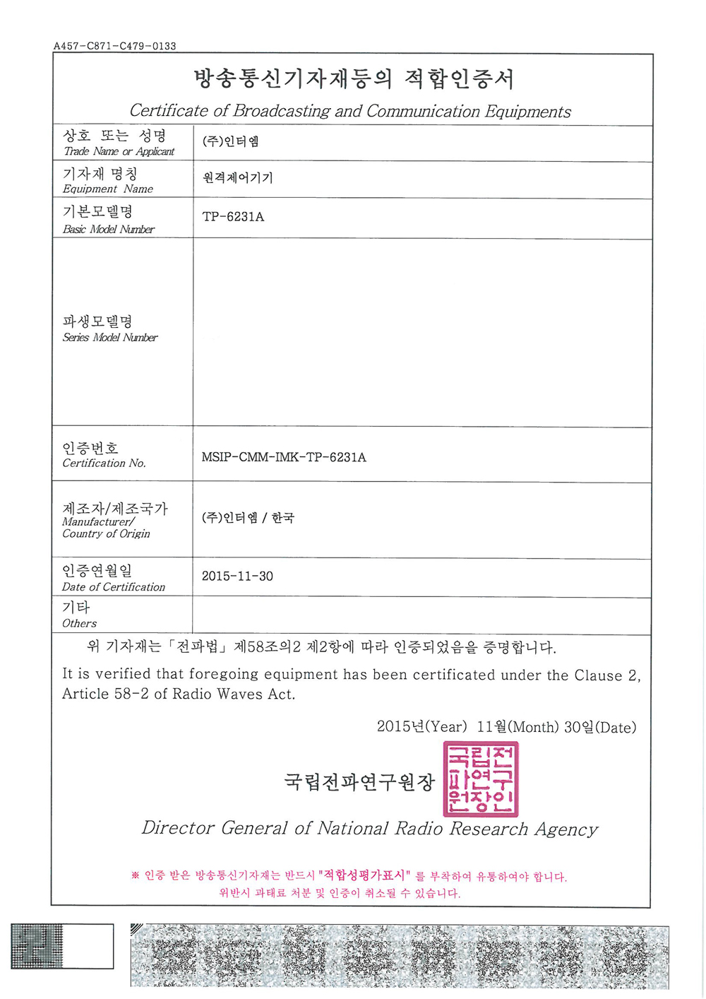 - 제조국 : 대한민국