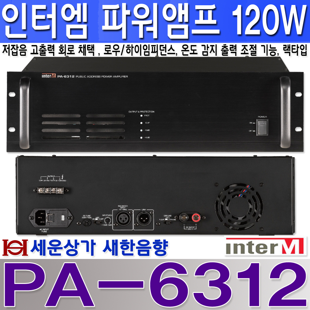 PA-6312 인터엠 파워앰프 120W, 전관방송 모노 파워 앰프 PA6312 : 새한음향 세운상가