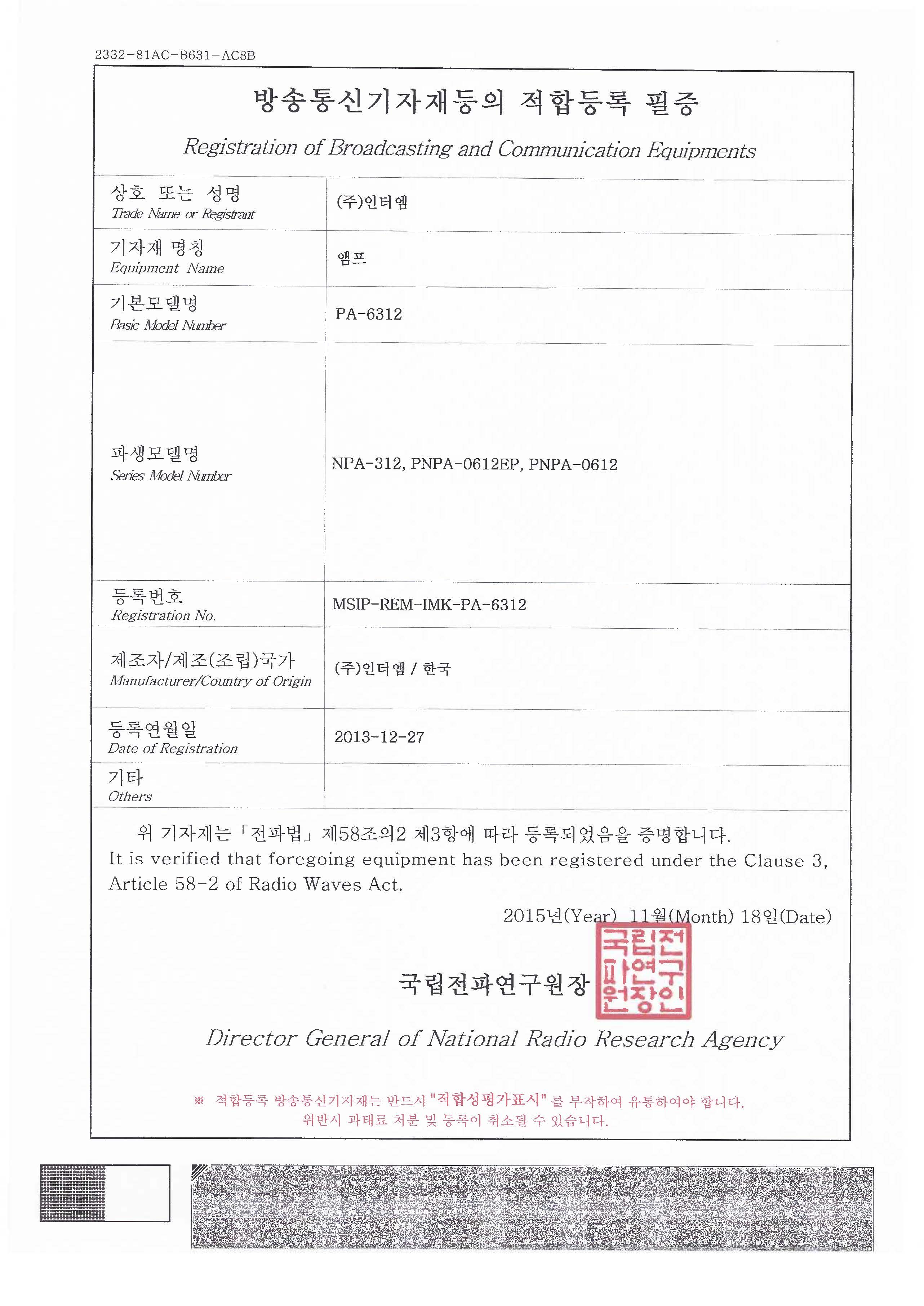 - 인증번호 : MSIP-REM-IMK-PA-6312