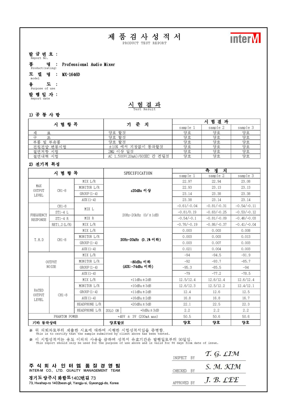 * 제품의 특징 및 사양 ( 인터엠 오디오 믹서 MX-1646D )