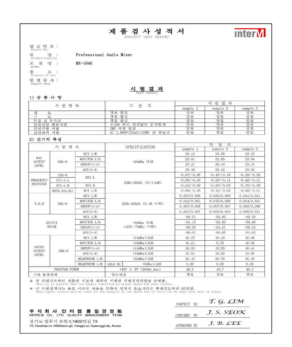 * 제품의 특징 및 사양 ( 인터엠 오디오 믹서 MX-1646 )