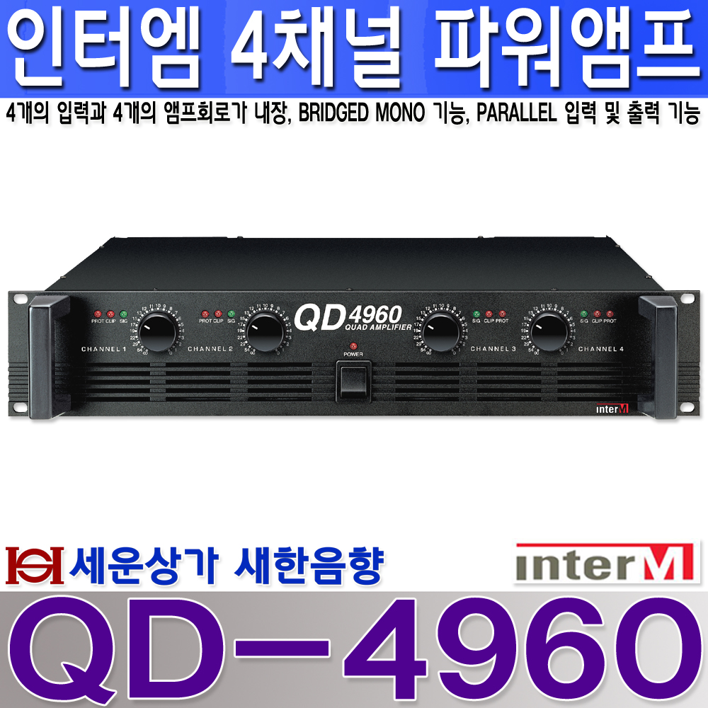 QD-4960 인터엠 4채널 스테레오 파워 앰프, 브릿지 모드, 패러럴 모드 지원 : 새한음향 세운상가