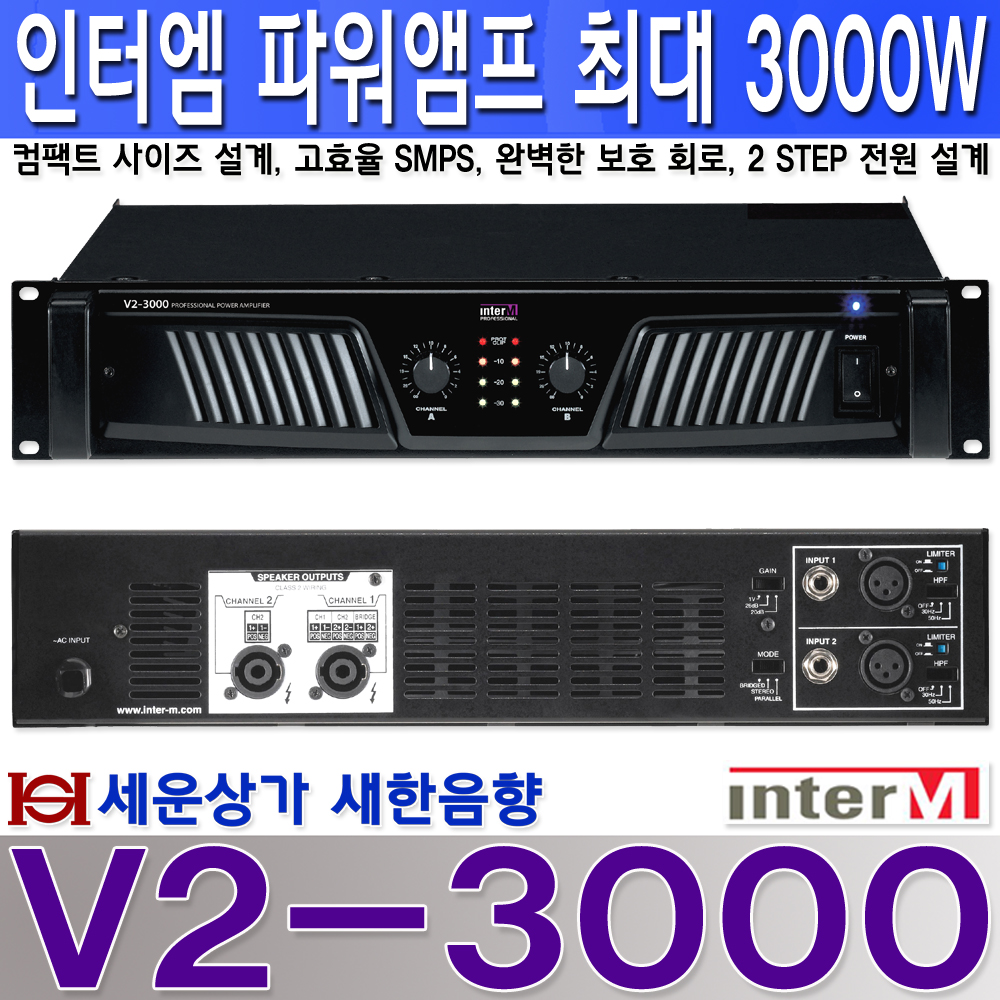 V2-3000 인터엠 고급형 스테레오 파워앰프 최대 3000W, 브릿지모드, 2오옴 지원 : 새한음향 세운상가