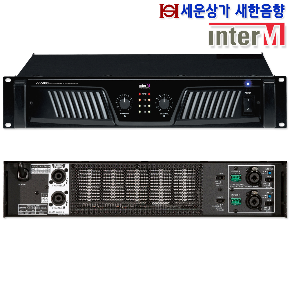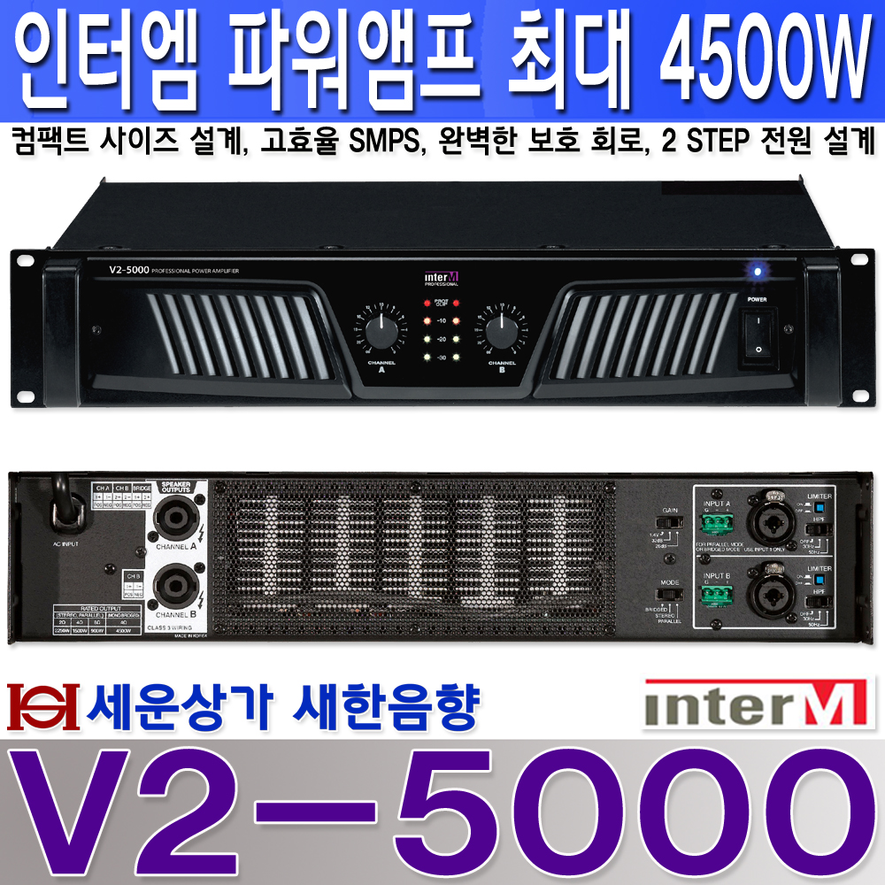 V2-5000 인터엠 고급형 스테레오 파워 앰프 최대 4500W, 브릿지모드,2오옴 지원 : 새한음향 세운상가
