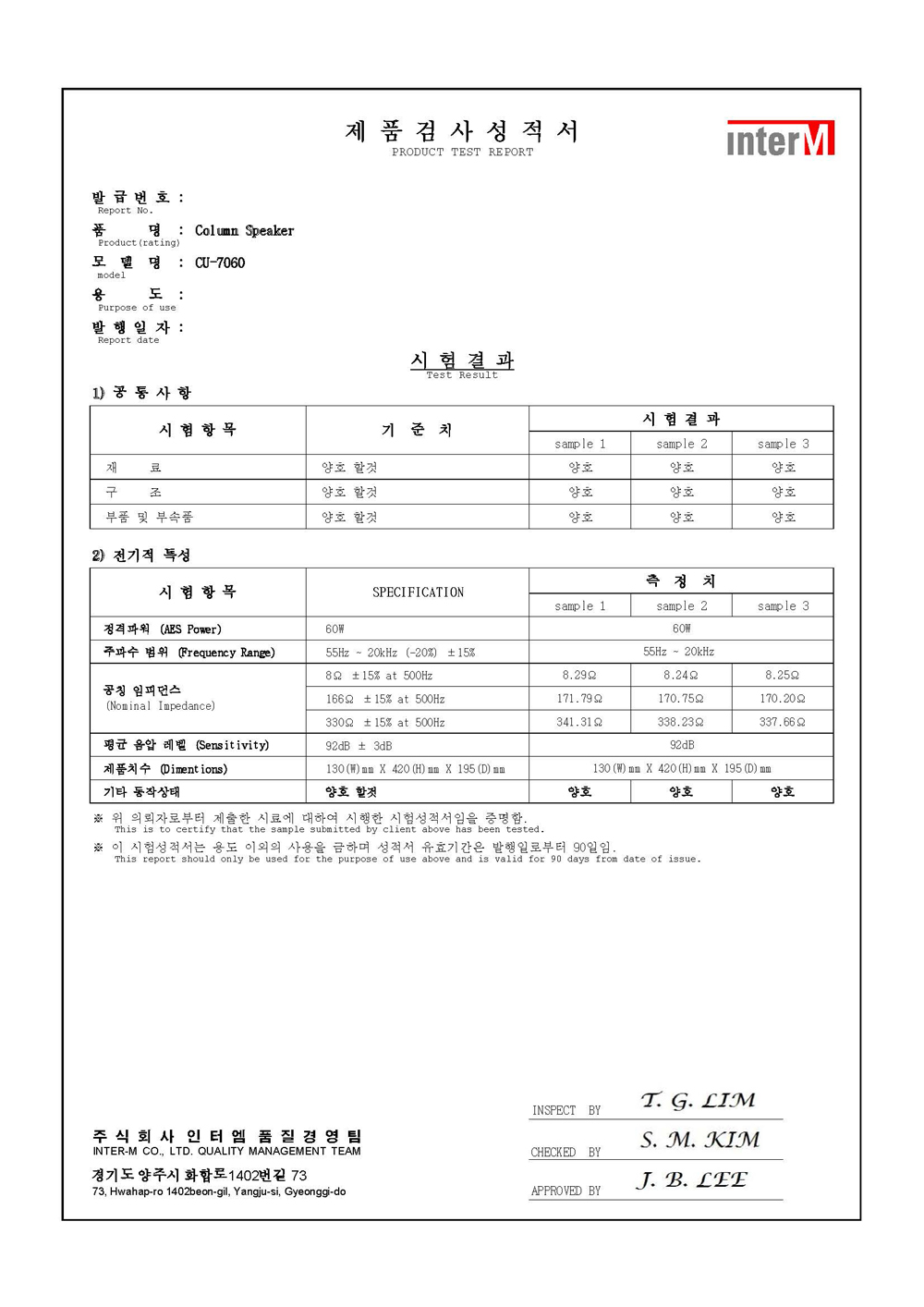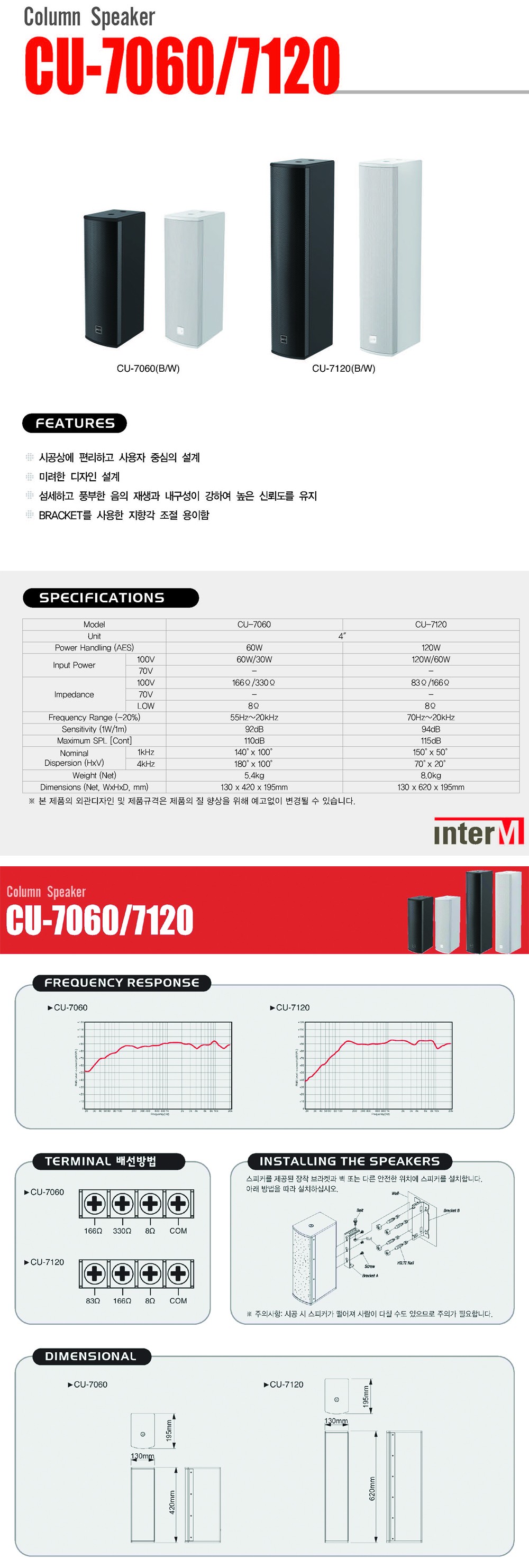 CU-7060 인터엠 대출력 컬럼 스피커 60W, 고품질 음원 재생, 하이/로우임피던스 겸용 / CU7060 본문