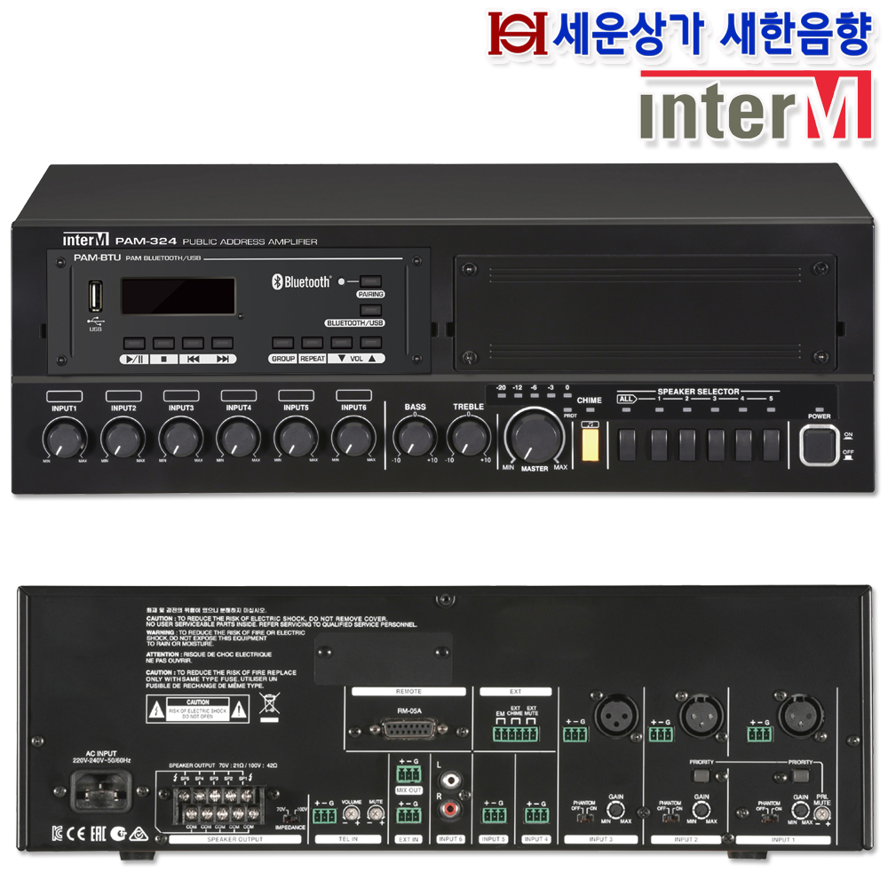 PAM-324 BTU, 인터엠 240W 앰프,USB, 블루투스,화재 비상 방송 음성 내장 : 새한음향 세운상가