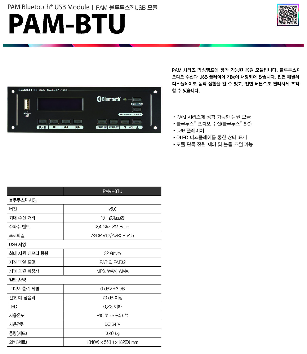 PAM-324BTU 인터엠 240W 앰프, USB, 블루투스 플레이어 내장, 5회로 셀렉터, 화재 비상 방송 음성 내장, 마이크 팬텀 파워 전원 공급, PAM324BTU 본문