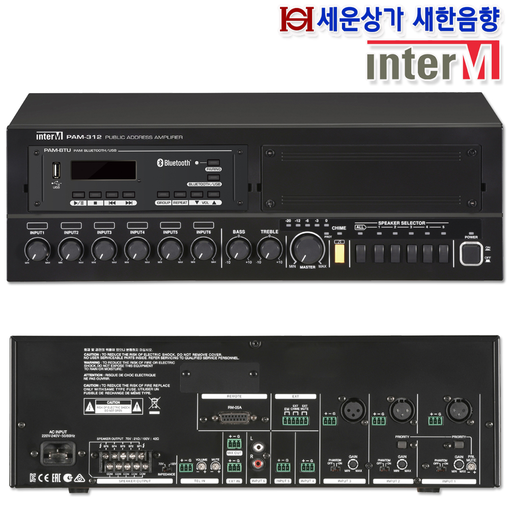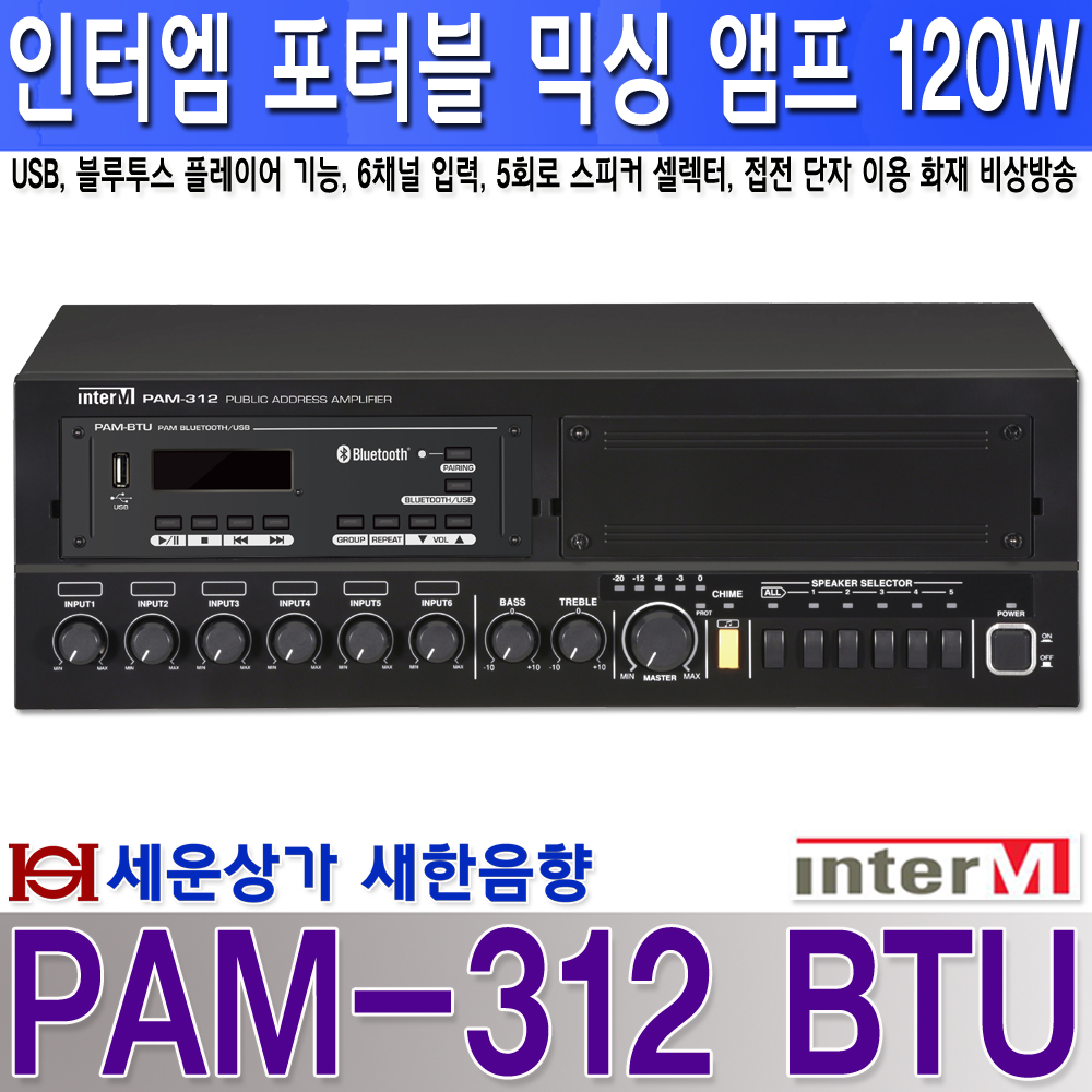PAM-312 BTU, 인터엠 120W 앰프,USB, 블루투스,화재 비상 방송 음성 내장 : 새한음향 세운상가