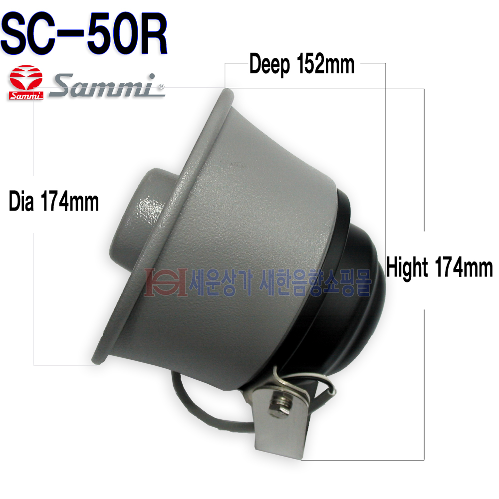 SC-50R 삼미스피커 소형 방수 혼스피커 50W, 알루미늄 케이스, 부식방지 스테인레스 브라켓, 8오옴, 차량, 선박, 중장비, 바이크, 터널 방송등 / SC50R