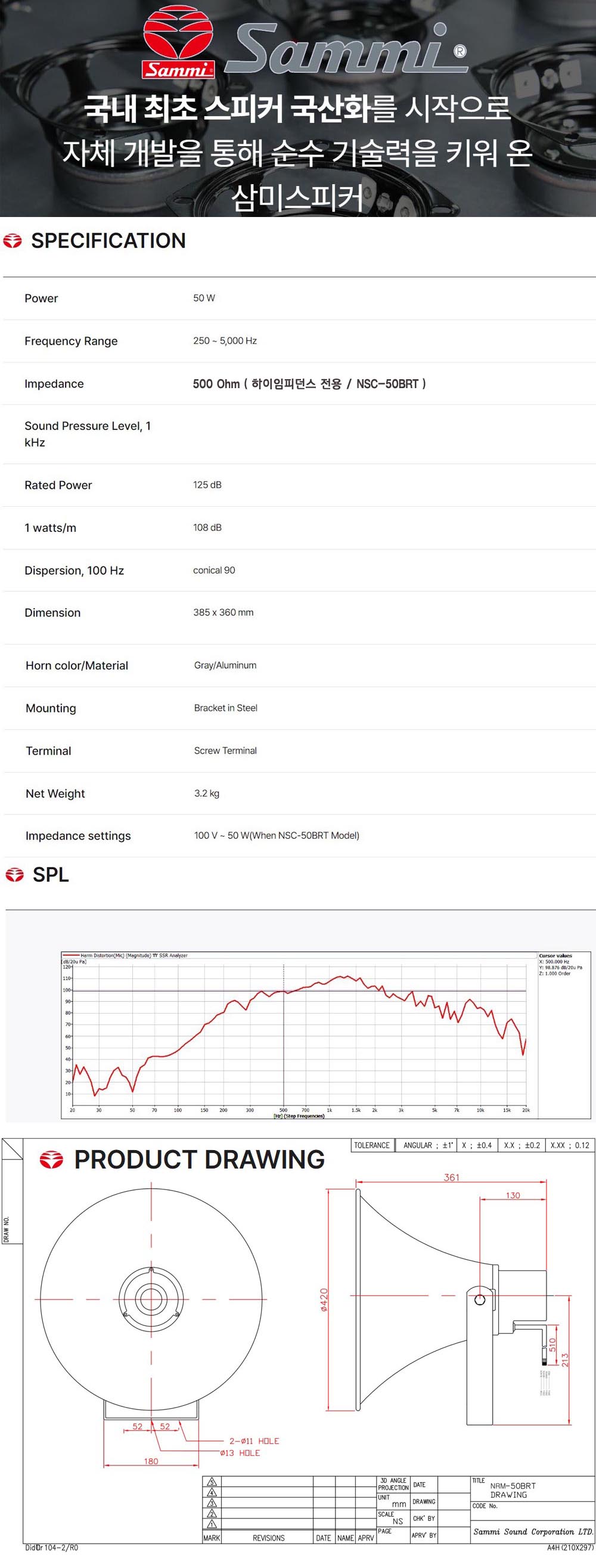 * 제품의 특징 및 사양 ( 삼미스피커 NSC50BRT )
